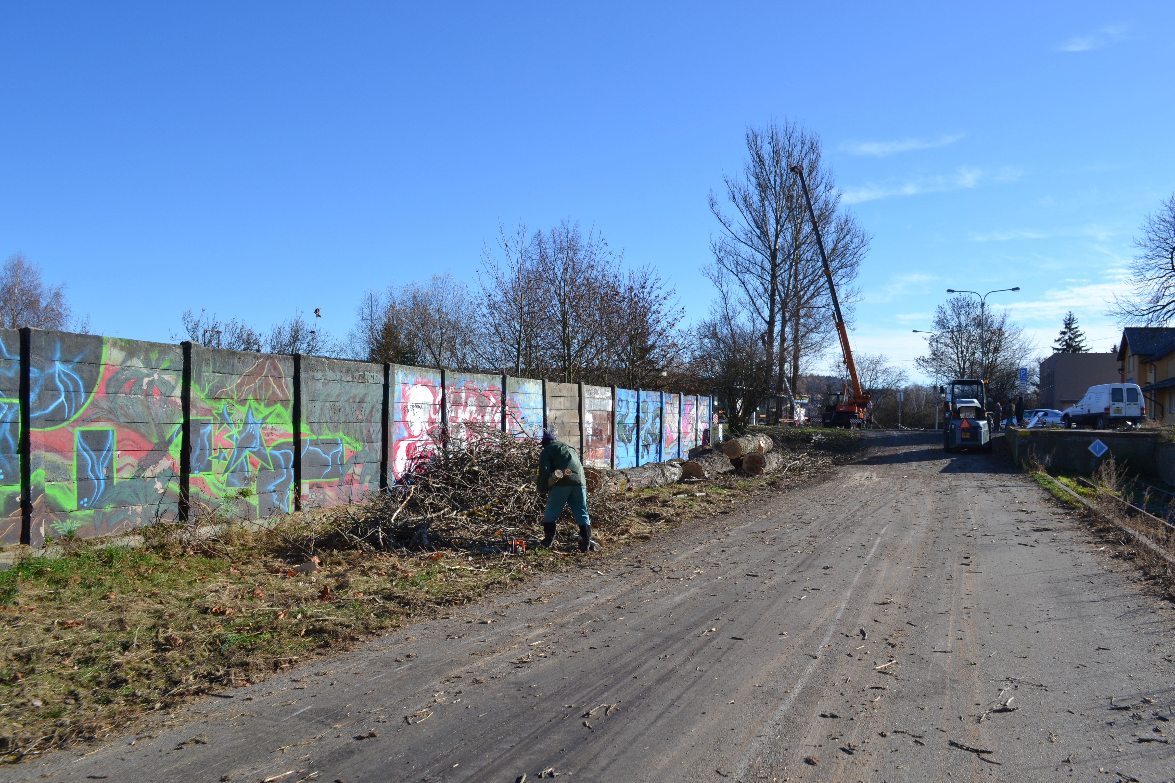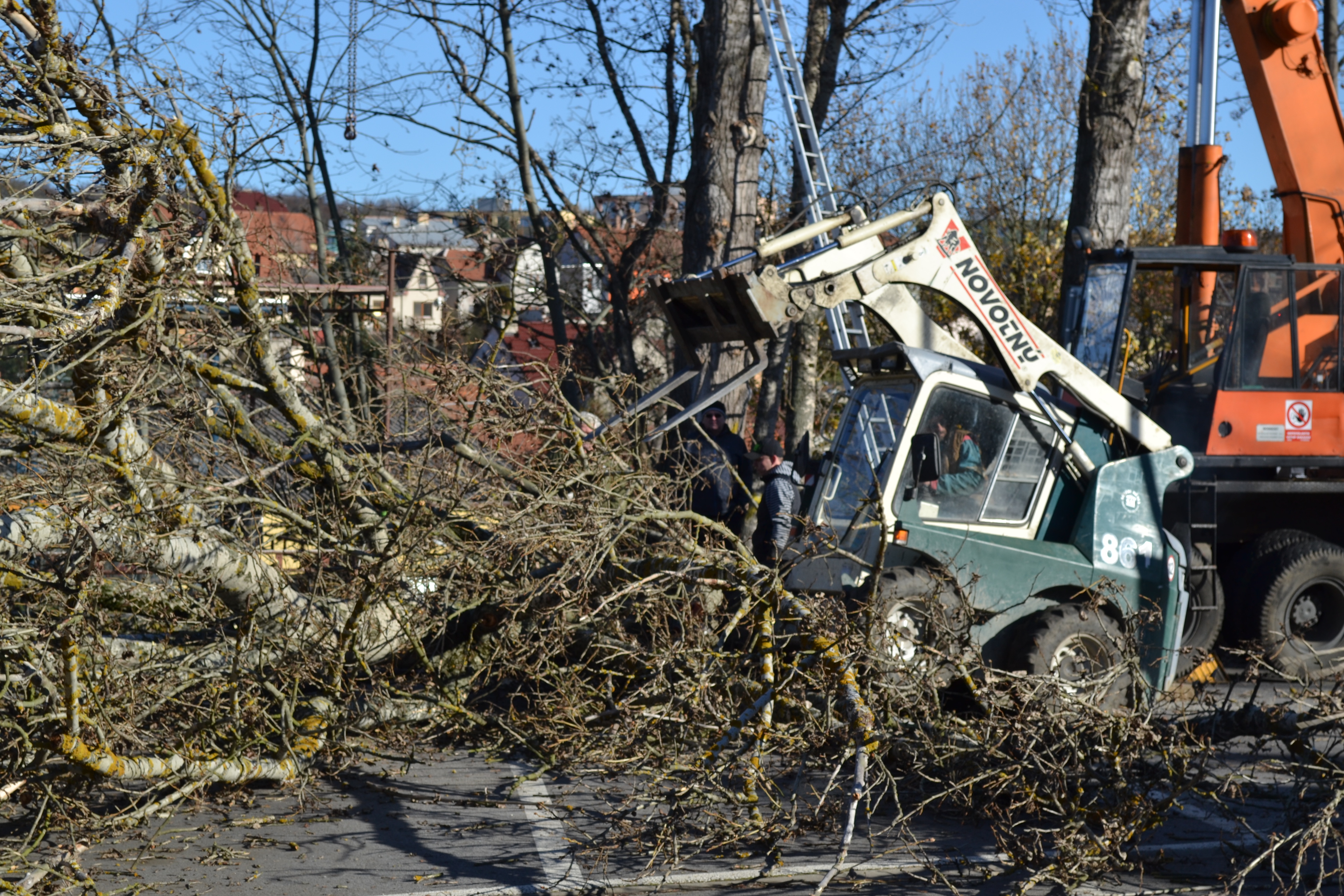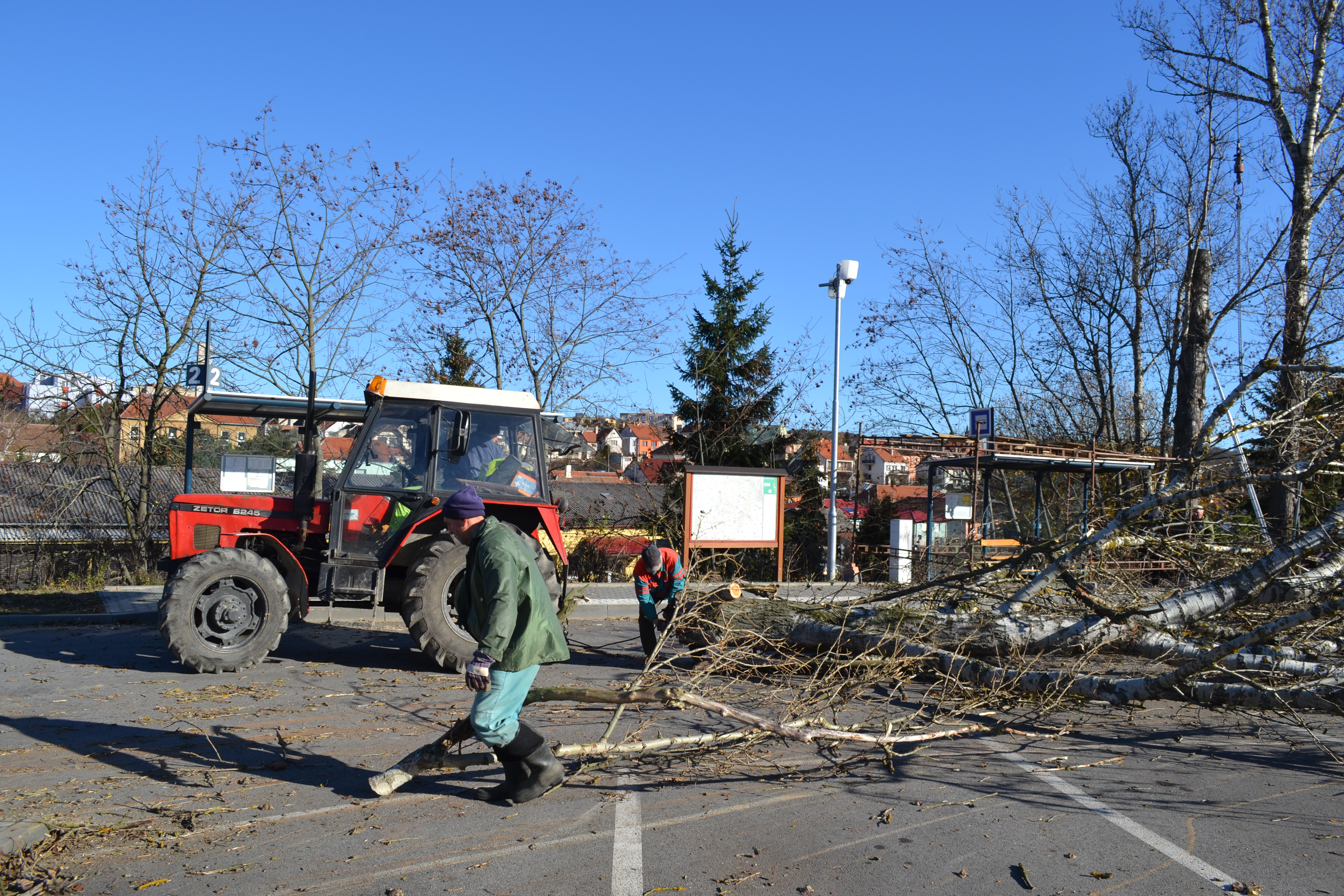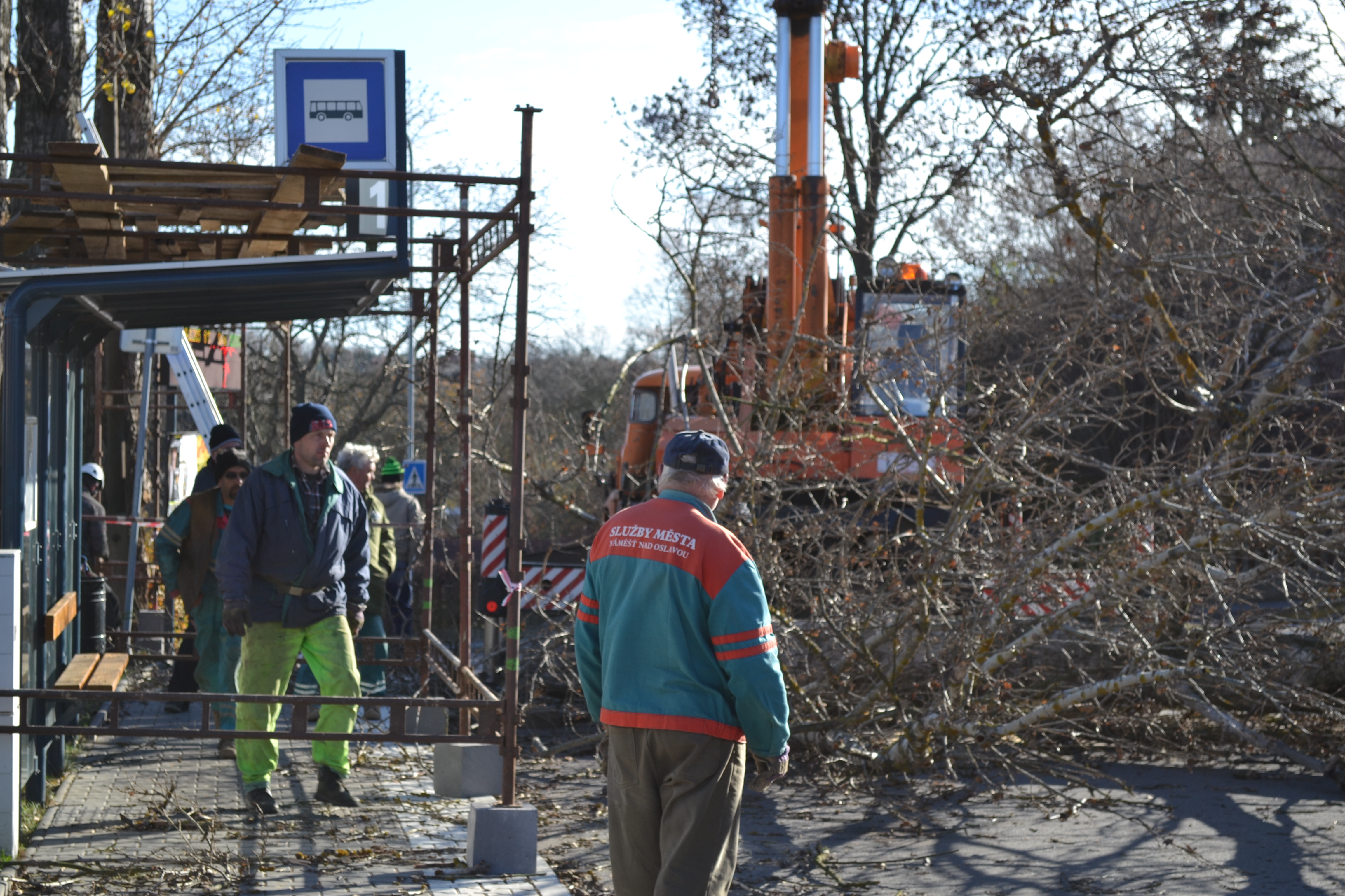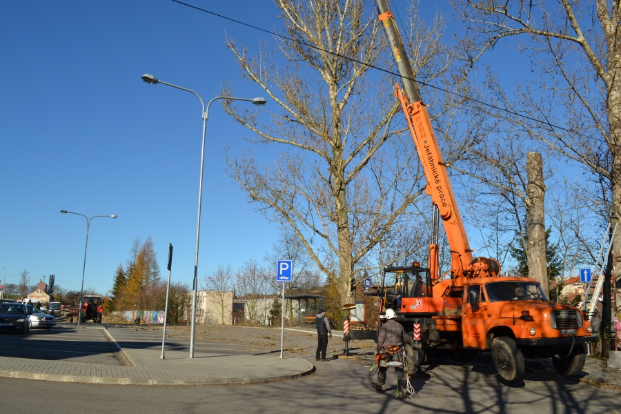 Kácení vzrostlých topolů na nádraží v Náměšti n. O. 14.11.2015. Investor: Město Náměšť nad Oslavou